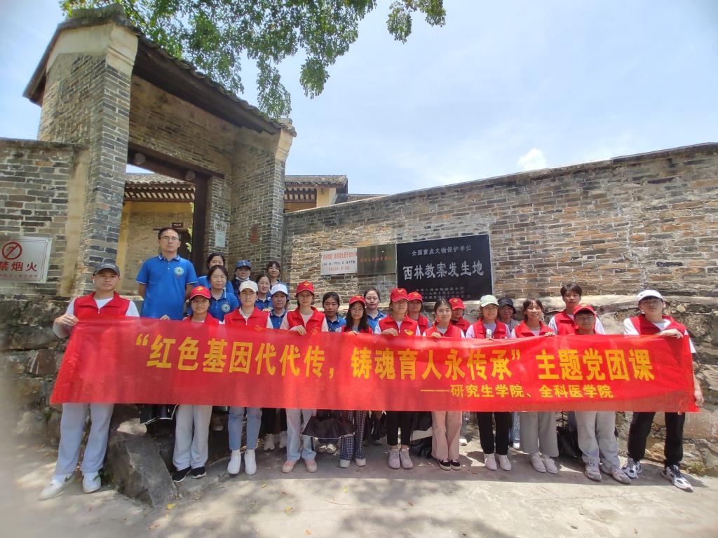 7月17日,“健康传播者——右医研究生医学知识宣讲团”联合“全心全意实践团”共赴百色市田林县定安镇“西林教案”遗址开展“红色基因代代传 铸魂育人永传承”主题党团日活动。
