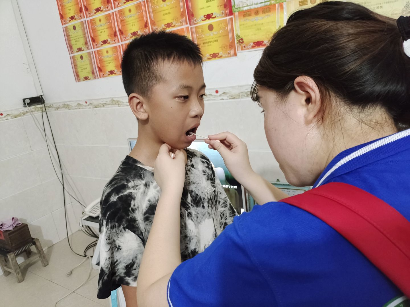 (研究生团队为村民检查口腔、量血压)