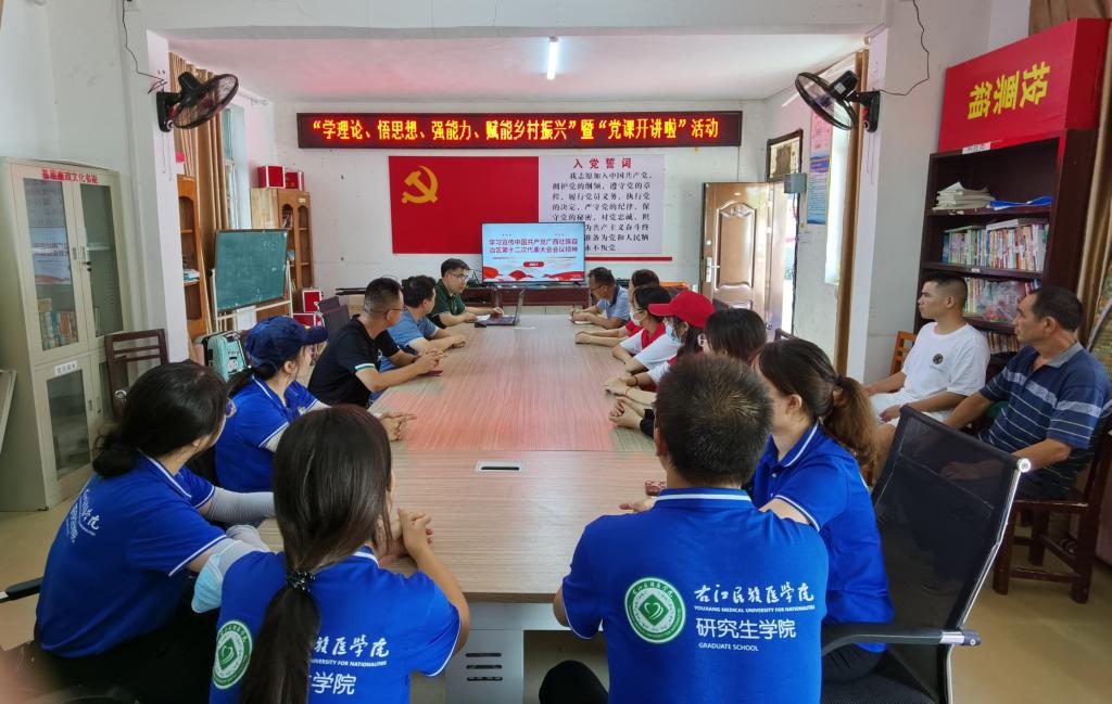 下午,以“学习广西壮族自治区第十二次代表大会精神”为主题,BET体育365登录入口院长陈秉朴、全科医学院党委书记莫小强老师为大家开展了“学理论、悟思想、强能力、赋能乡村振兴”暨“党课开讲啦”活动。陈秉朴院长就广西“1+1+4+3+N”目标任务体系展开讲解,强调在未来几年,要坚决做到“两个维护”,坚持党的全面领导,凝心聚力建设新时代中国特色社会主义壮美广西,推动“三大振兴”,抓好“八个方面”,营造“五个环境”,促进区域协调发展。