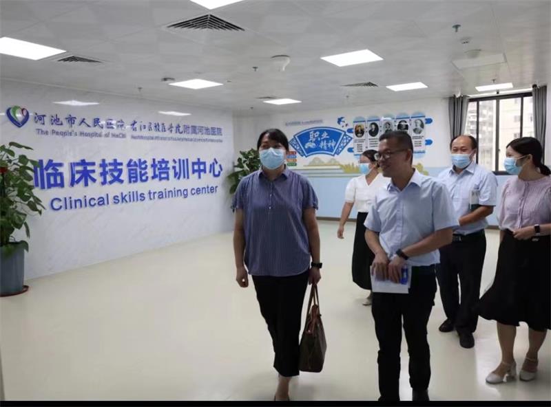 调研工作组还实地走访了河池市人民医院的临床技能培训中心、党建文化园,并深入学生宿舍了解学生的住宿及日常生活情况。