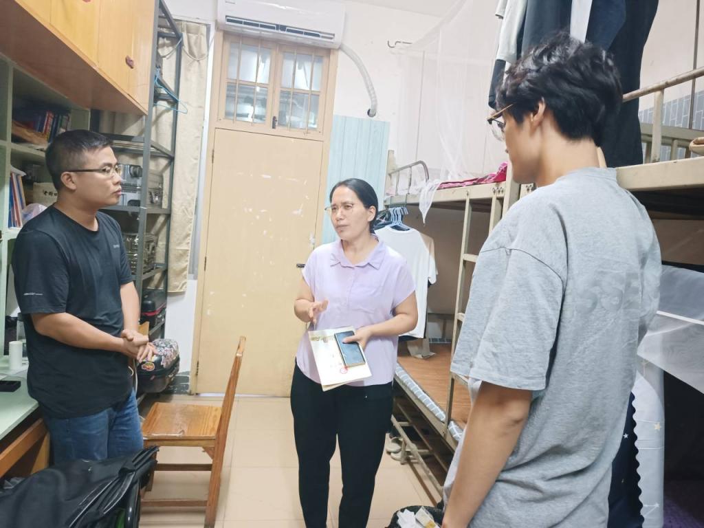 一是走进学生宿舍。6月14日晚上,BET体育365登录入口谭会恒副书记深入学生宿舍进行走访。走访过程中,谭会恒副书记与研究生进行亲切交流,就研究生宿舍硬件设施、饮水和用水问题、用电安全、学习压力、就业方向等方面进行交流,了解研究生的生活状况、思想动态和宿舍管理情况。