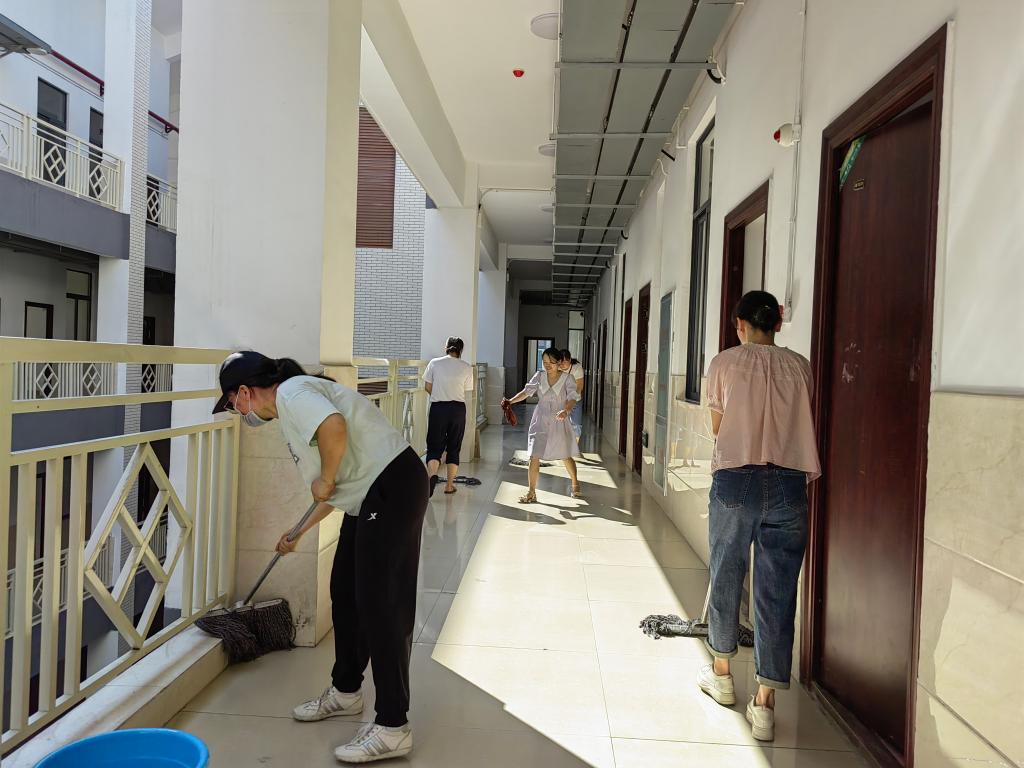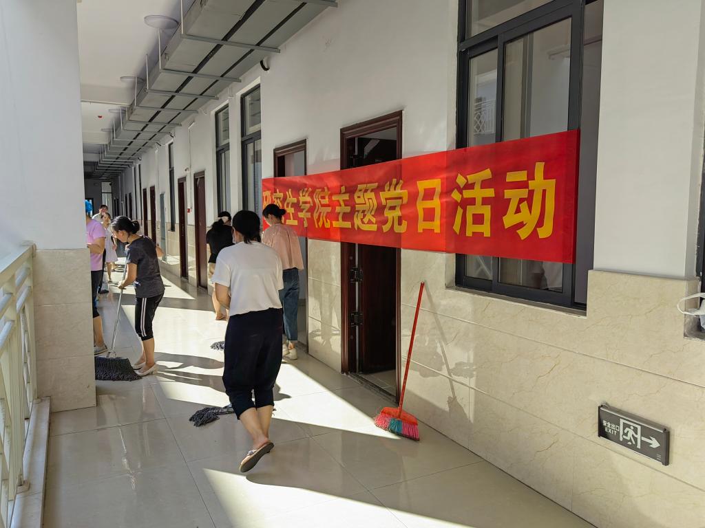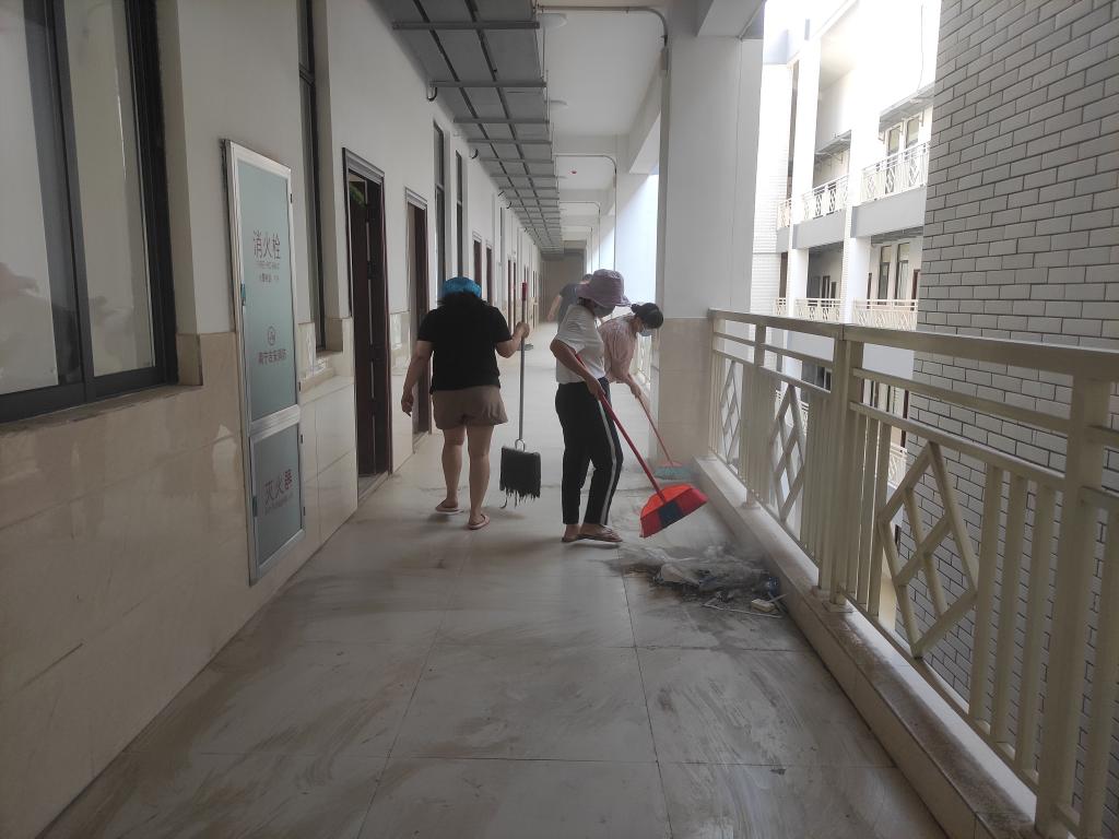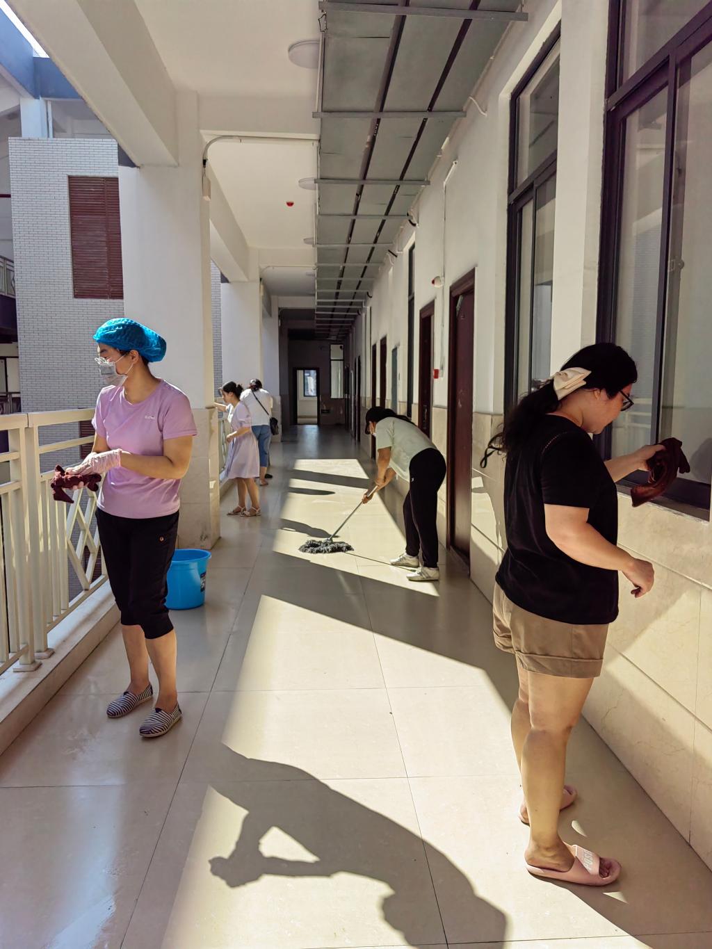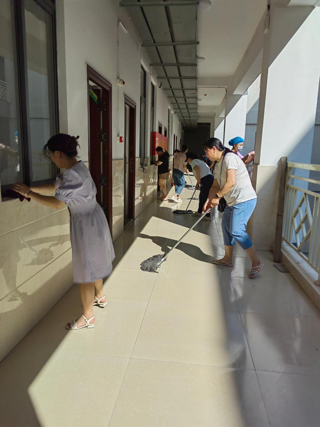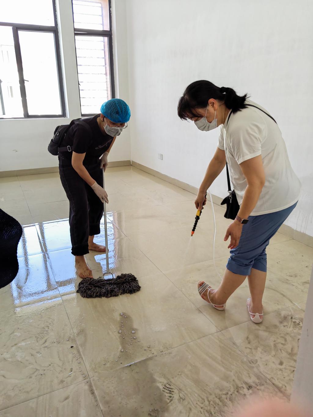 党员干部同志发挥模范带头作用,充分发扬不怕苦不怕累,脏活累力抢先上的精神,地面粘的腻子粉拖把去不掉,用瓷砖刮,垃圾铲不够用,用硬纸壳铲,水打湿了鞋,干脆光脚拖地。“右医是我家,我爱我家”,大家将新校区当成了自己的家来打扫,带着对学校发展新阶段的殷切期盼,积极参与到这次主题党日实践中。全体人员通力合作,圆满完成了任务,为百东校区良好卫生环境贡献了微薄力量。