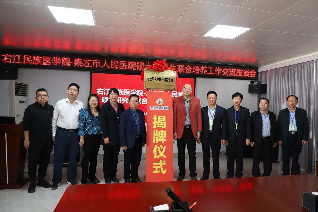 会上,BET体育365登录入口曾怡院长介绍了BET体育365登录入口研究生教育发展现状,崇左市人民医院党委书记李晔介绍了医院的基本情况,双方共同为“硕士研究生联合培养基地”揭牌。